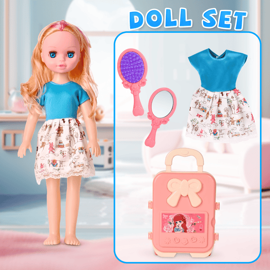 42CM doll with luggage, comb, mirror
