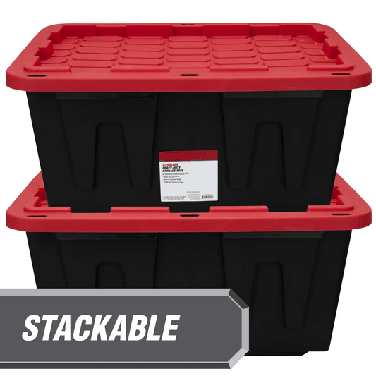 Large Storage Bin, 27 Gallon Plastic Storage Container with Snap-On Lid, Black and Red 4Pack